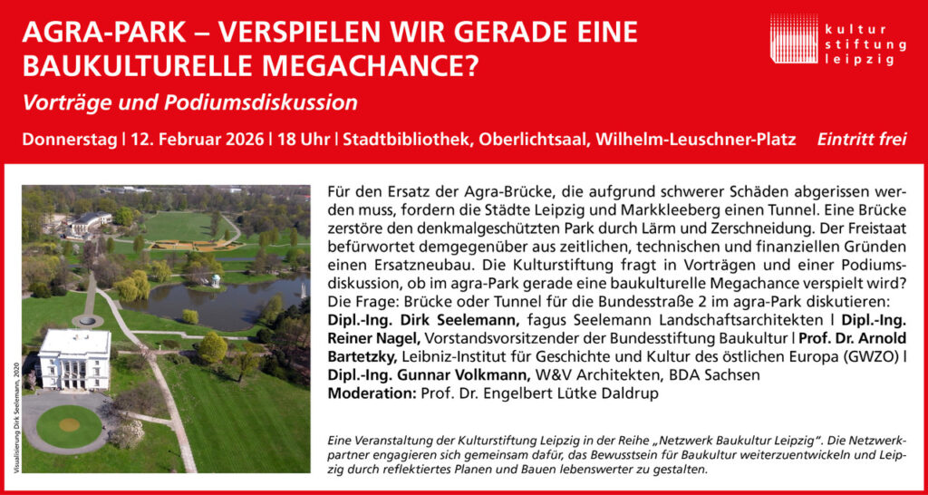 Bitte entnehmen Sie weitere Infos hier: https://www.kulturstiftungleipzig.de/agra-park-verspielen-wir-gerade-eine-baukulturelle-megachance/